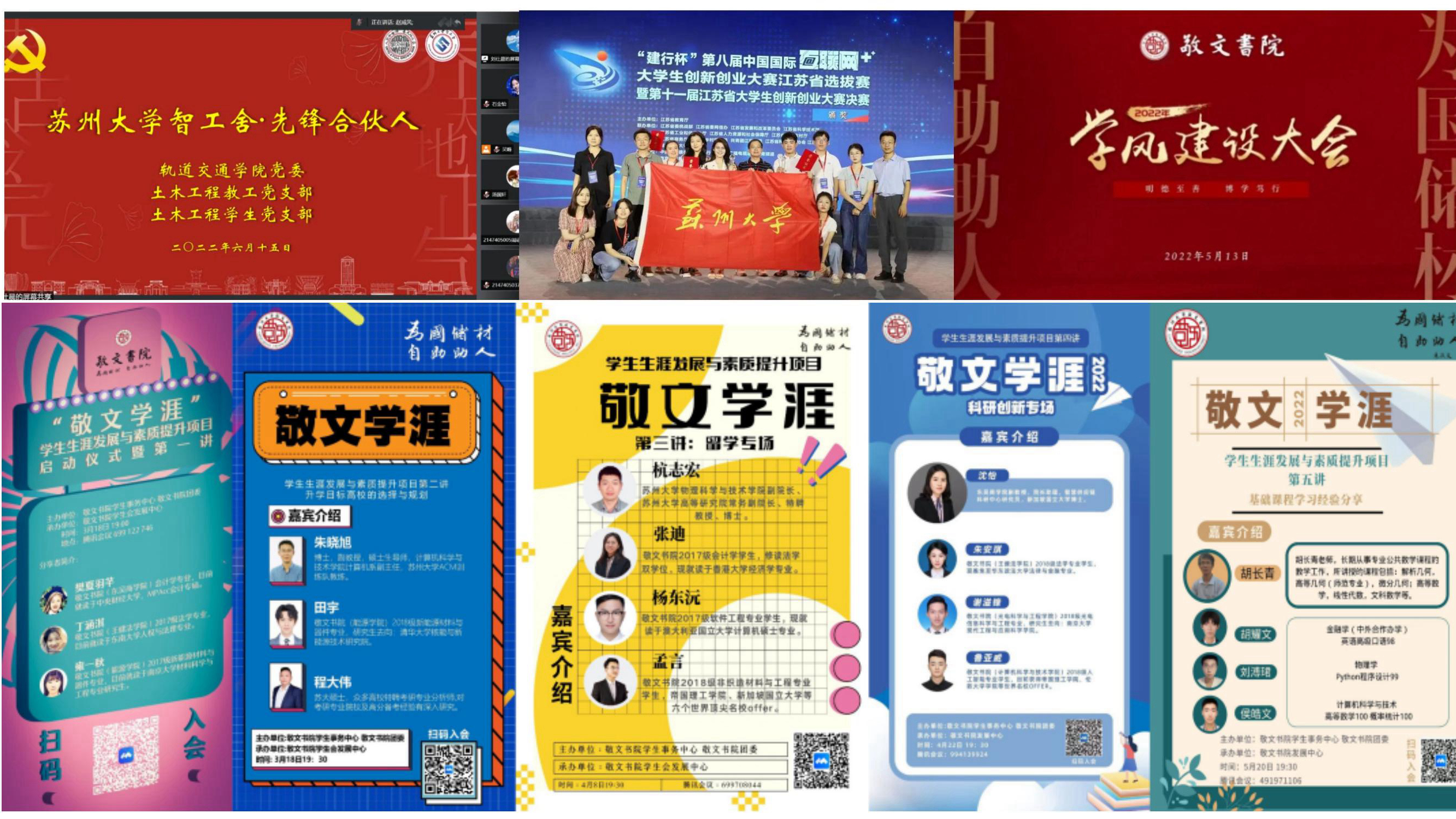 在党建领航下,各社区以学生成长为中心,在社区建设中助力学生高质量发展。智工舍将新工科特色充分嵌入,以“先锋科创汇”为品牌,组建科创思政讲师团,引导学生胸怀“国之大者”,服务国家之需。聚焦“学科竞赛中的科创与思政”,累计开展60余场科创沙龙,培育项目荣获第十七届“挑战杯”全国大学生课外学术科技作品竞赛全国二等奖;紫卿书院2项培育项目获得第八届中国国际“互联网+”大赛金奖。敬文书院实施“敬文学涯”项目,邀请各类导师、优秀院友进社区、进课堂、进网络,通过“导师谈”“朋辈说”“学习坊”三个模块,为学生提供精细化、差异化、专业化成长服务,目前已开展 22 期,累计2100 余人次参加;启动2022年学风建设,涵育优良学风。各社区本科生深造率提升显著,已经超过42%。学生升学意愿强烈,对于考研帮扶、升学指导等存在极大的需求。学生高质量就业成效显著,得到企事业单位、家长的广泛认可。