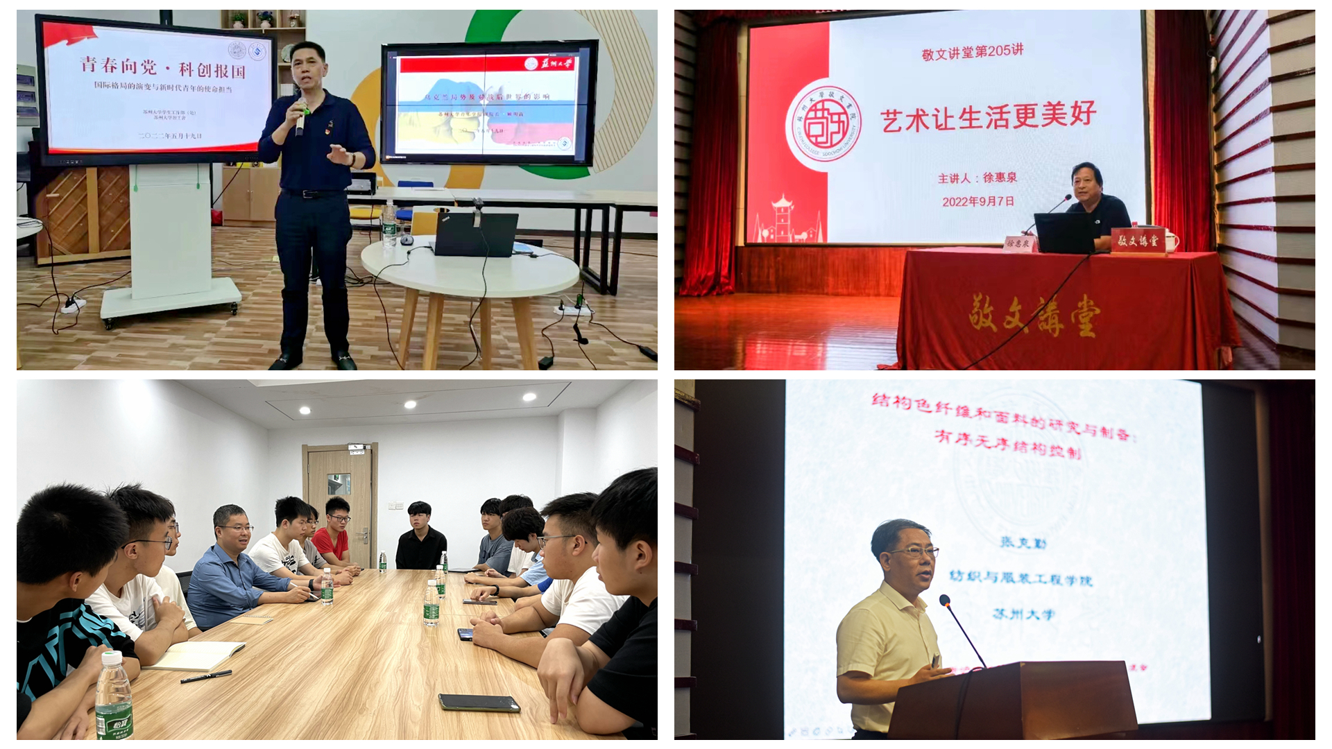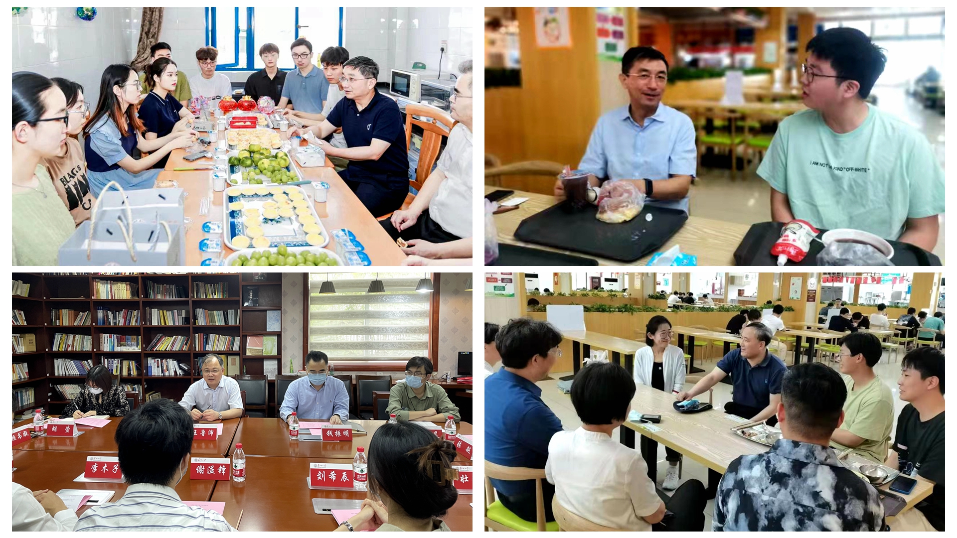 “考研准备考哪所学校?”“学习生活还有没有困难?”2022年的中秋,在敬文书院南苑207宿舍,校党委书记江涌和同学们唠起家常,送上苏大定制月饼。这已成为学校党政领导每月的“惯例”,下沉到各个社区以讲授党课、调研交流、师生共膳等多种形式关心学生成长。同时,他们与马院专家、抗战老兵、行业专家、212名专职辅导员等组成“德政导师团”,坚持立心铸魂。在“成长陪伴”计划指引下,学校选聘了1235名专业教师、校外行业专家组成“学业导师团”,949名导生组成“朋辈导师团”,全校专兼职辅导员、关工委老同志、社区管理人员组成“生活导师团”,分别进驻社区的“事务管理站”和“发展指导站”。四类导师团以合力拧成强有力的“育人绳”,承担学生成长各阶段的育人任务,为学生的发展领航定标。