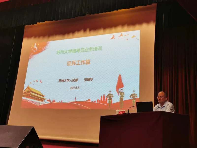 为深入学习宣传贯彻党的二十大精神,着力增强辅导员队伍国家安全意识,提高征兵工作业务水平,11月21日,我校国防教育专题培训在天赐庄校区敬贤堂举行。学生工作部(处)部(处)长、人武部部长董召勤,各学院(部)分管本科学生工作领导以及全体本科生辅导员参加了本次培训。培训由学生工作部(处)副部(处)长、人武部副部长宋海英主持。