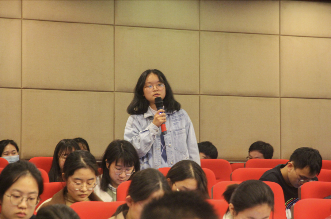 在提问环节,同学们就“初入门者如何欣赏交响乐”、“对流行音乐借用交响乐旋律的评价”等方面进行了提问,陈团长结合自身经历一一解答,特别强调了初入门者应当了解作曲者所处的社会环境、创作意图,做到文学与音乐欣赏的共通;流行音乐也是推广交响乐的方式之一并且版权有时间限度,借用是合理的。