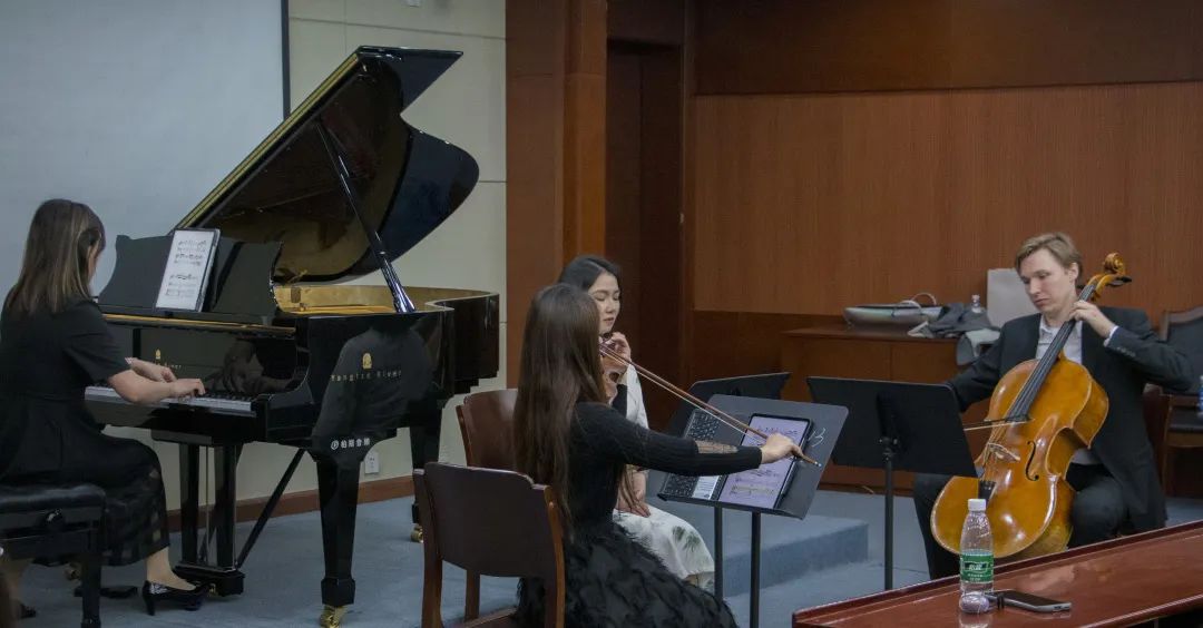 牡丹亭室内乐是以明代作家汤显祖的话本《牡丹亭》为原型进行改编,钢琴,小提琴,大提琴与竹笛为演奏乐器,东西方音乐相交融,极具特色。演奏老师们技艺高超,情感含蓄动人,配合默契。他们用音符简练讲述了杜丽娘和柳梦梅凄婉动人,生死相依的爱情故事,旋律悠扬婉转,缠绵悱恻,随着乐曲的推进,让我们听众的心也随之一起一落。听完全曲,就像身临其境地观看了一出爱情故事,令人回味无穷。