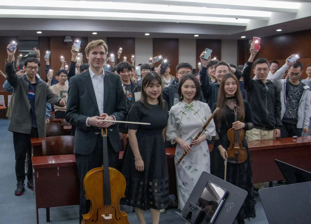 参与此次演出的交响乐团成员有:孟晓洁老师(竹笛),康月佳学姐(小提琴),Leon Hillebrands老师(大提琴)和林洛东老师(钢琴)。他们用精湛的演奏技巧表现出原著的喜怒哀乐真感情,层层递进,如泣如诉,把现场同学们全部带入这部传统戏剧的意境之中。