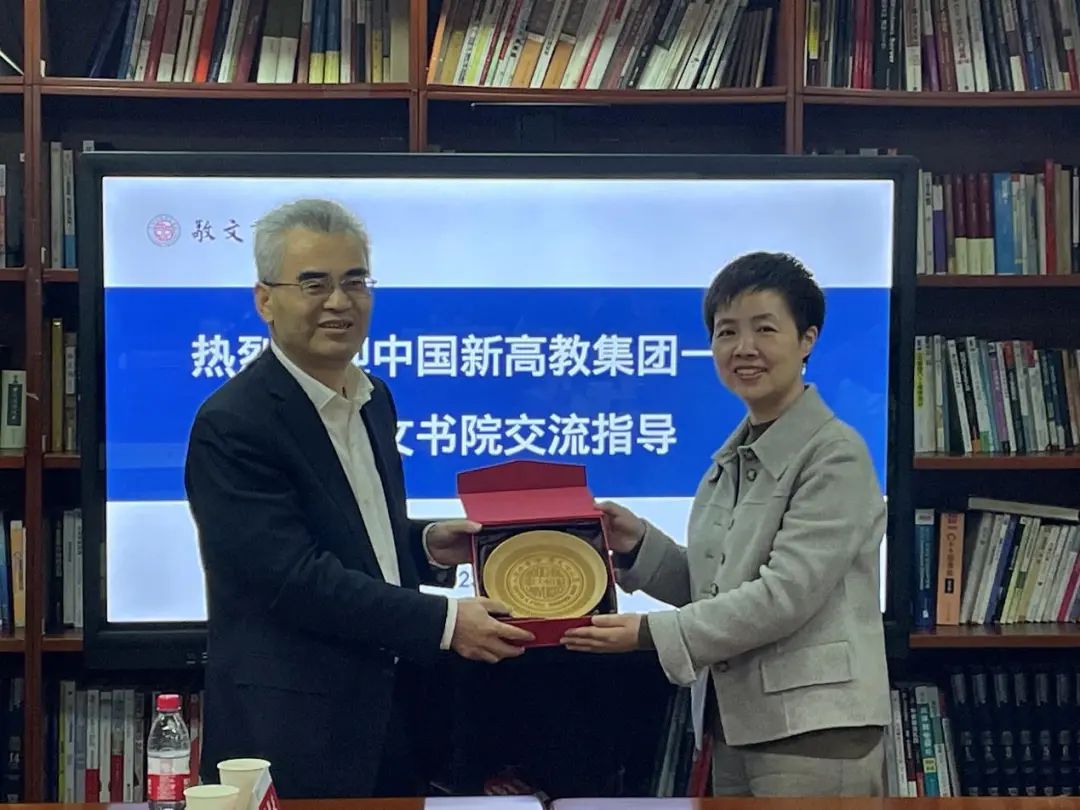 姚莉对敬文书院的热情接待表示感谢。她介绍了中国新高教集团发展历史、集团理念、内部治理体系、学生就业创业等情况。