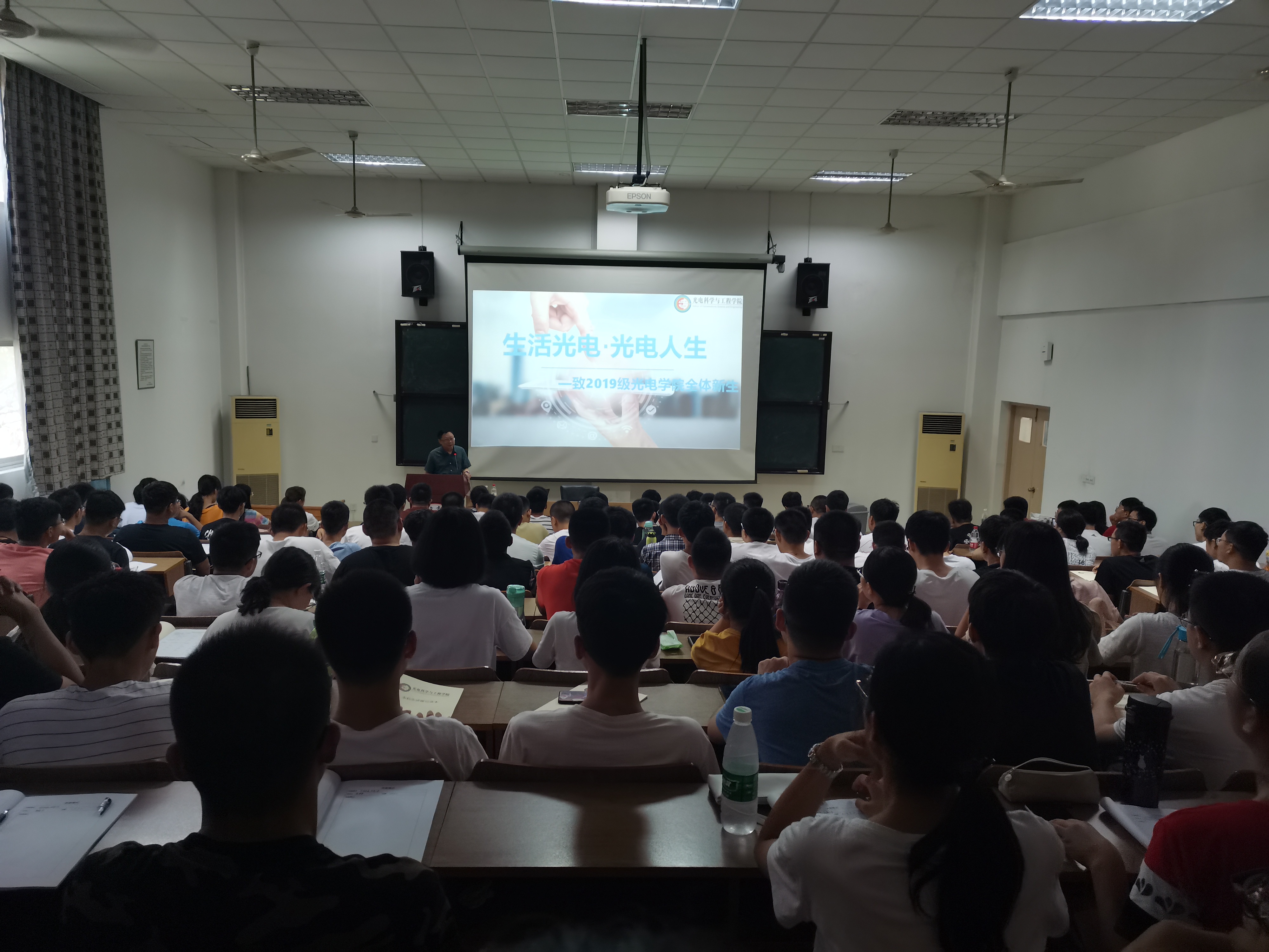 光电科学与工程学院党委书记陈建军以“生活光电和光电人生”为题,从生活中的光电入手,生动地为大家展示了光和电与人们生活息息相关,并带领同学们从历史沿革、平台建设及未来发展等方面全方位了解学院改革发展的“前世今生”,让同学们对学院以及自己所学专业有了更加深入的了解。他希望同学们在大学四年里了解自我,认知环境,科学规划,确定目标,付诸行动,开启光电人生的新篇章。
