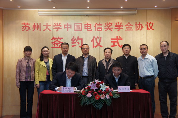 据了解,近年来中国电信苏州分公司开展的工作得到了社会各界的认可,先后被授予“全国文明单位”、“中央企业先进集体”、“全国用户满意企业”等荣誉称号。我校与苏州电信一直保持着良好的合作关系,早在2010年11月,我校便与中国电信苏州分公司签署战略合作框架协议,双方在建设校园信息化研究平台,打造精品校园信息网络,拓宽应届毕业生就业渠道人才培养等多方面开展了交流和合作,此次设立“中国电信奖学金”又将校企合作提升到了一个新的层次。  |
