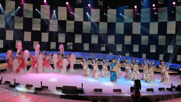 “钟楼气宇轩,方塔英姿呈,南草坪,见证着年年岁岁学子毕业情。敬文楼,炳麟馆,贤达助学书香浓,东吴人代代铭深恩……” 具有浓郁苏州风味的评歌《东吴情》是我校在民族风环节中展示的节目。学生们通过前期在昆山千灯古镇的采风,邀请了当地文化馆的评弹老师顾燕华参与编排,以弹唱与舞蹈相结合的方式展现了被誉为“中国最美声音” 的评弹艺术的独特魅力,同时也通过改变的唱词,展示了苏州大学的校园风貌和办学历史。动人的旋律、优雅的弹唱以及传神的演出赢得了在场观众的一致好评,也赢得了评委们鼓掌称赞。