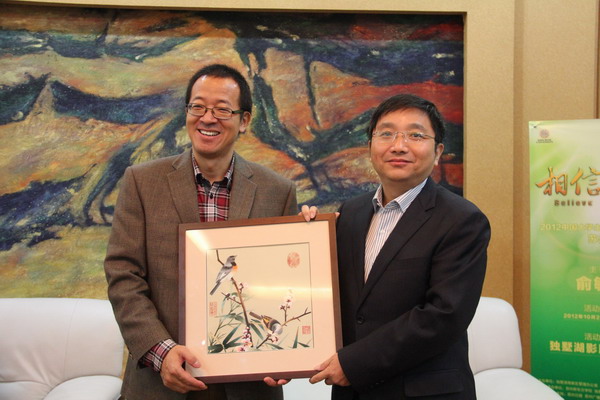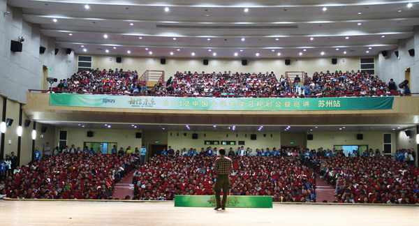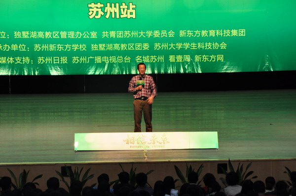 10月21日, 由校团委、独墅湖高教区管理办公室、新东方联合主办,校学生科技协会承办相信未来——2012中国大学生学习规划公益巡讲在独墅湖影剧院举行。新东方教育科技集团董事长兼首席执行官俞敏洪亲临现场,与1500多名苏大学子面对面进行交流,用自己的经历向苏大学子传递着有关大学规划、人生规划和个人成长的正面力量。讲座前,校党委副书记、副校长江涌会见了俞敏洪一行,并赠送了纪念品。