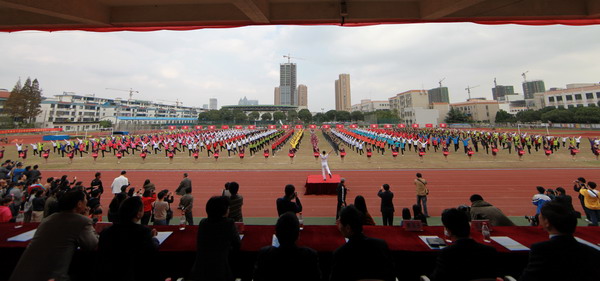 各院(部)和裁判员方队呈现了别出心裁的风采展示,唐文治书院也在校运会上首次亮相。在体育学院精彩的舞龙舞狮开场表演后,全校教职工代表进行了广播体操表演。一片欢呼声中,第50届校运会正式拉开帷幕。