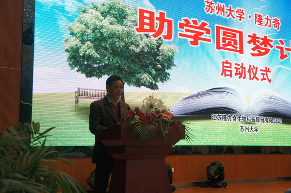我校2003届硕士毕业生、隆力奇副总裁严泽民先生,是一名苏大人也是隆力奇人,他讲述了在苏大的学习经历和在隆力奇的职业成长之路。他表示,自己今天的成就离不开母校的培养和企业的栽培,他希望100名受助同学能学有所成、成就梦想。