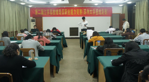 20日,参赛选手进行了自我介绍与展示、主题班会两个现场项目的考核。 现场项目结束之后,陈文娟代表评委作了点评。她认为在一天的比赛中,参赛选手们在展示全面的职业能力的同时,也充分展示了学生工作者奉献的精神与爱的力量。她对选手们的表现进行了全方位的总结,并就班会主题选择、主体定位、思想教育的有效性以及现场比赛中的一些细节把握等问题给予了指导意见。 张国华对本次竞赛作了总结。他对本次竞赛评委专家组的遴选工作作了补充介绍,并对各位评委的辛勤工作表示感谢。他表示,苏州大学辅导员培训与研修基地是苏南片本科院校及独立学院辅导员培训能力与素质的“大本营”,也是辅导员的“家”,基地将竭尽全力为辅导员交流工作、提升能力提供服务。他希望大家今后常回“家”看看,加强工作联系,取长补短,共同做好辅导员工作。 本次辅导员职业能力竞赛是基地贯彻省教育厅相关文件的精神,为落实立德树人根本任务,促进辅导员专业化、职业化和可持续发展而推出的一项重要举措,也是我校第二次举办江苏高校辅导员职业能力竞赛。经过一天半的紧张比赛,来自不同高校的辅导员充分展示了自己的专业特长、良好的综合素质以及娴熟的业务技能,借由此次复赛脱颖而出的优秀辅导员们也将再担重托,参加全省范围的选拔,备战全国辅导员职业能力竞赛。