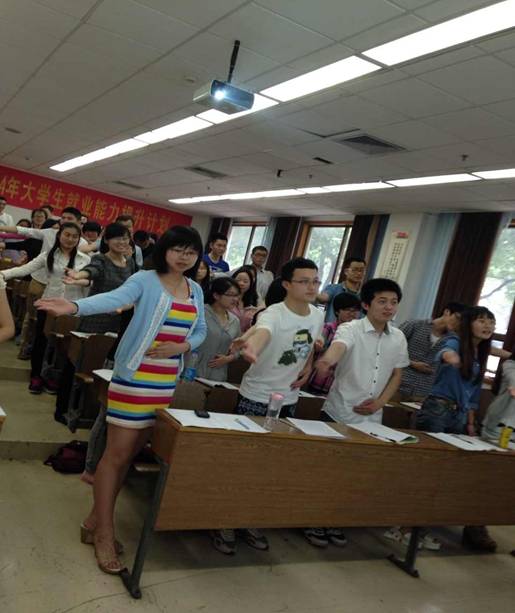 “江苏省2014年困难家庭大学生就业能力提升计划” 是省招就中心为帮助高校困难家庭大学生提升就业能力,针对高校在校困难家庭大学生免费提供的就业能力提升培训课程。本次培训分为5月24、25日和6月7日、8日两个阶段,培训围绕自信力、理解力、沟通力、协调力和说服力等5项就业能力,设计了素质拓展、职业规划、人际关系、形象礼仪、演讲口才及求职面试等6门课程。培训在传统的课堂讲授形式的基础上,增加了师生游戏互动、现实场景模拟和学习心得分享等环节,深受广大参训学生的欢迎,现场气氛热烈。