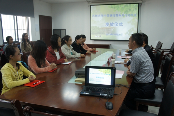 10月24日下午,中信银行苏州分行助学金发放仪式在我校学生工作部(处)107会议室召开。参与本次会议的有中信银行苏州分行党群监保部总经理马立新,我校学生工作部(处)部(处)长陈晓强、副部(处)长陈平以及10位获助学生。