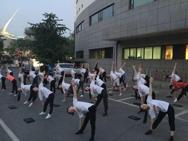 “一天不排练十遍以上,状态是出不来的。”这是东吴艺术团指导老师们对同学们提出的要求。赴京之前,东区的体育馆因体育加试不能排练,参加演出的同学们只能来到条件简陋的本部体操房。每晚6点到11点,体操房总是灯火通明,洒满了同学们辛勤的汗水。抵京以后,同学们全身心投入了文艺会演的紧张彩排和录制之中。由于场地有限,同学们只能“占领”宾馆的停车场和大堂进行排练。同学们的刻苦为节目的成功录制打下了扎实基础。面对如此高规格的晚会,同学们在激动之余,感觉到了肩上沉甸甸的责任。大家表示:“一定尽量将每一个细节做到完美,向全国电视观众展示我们苏大人的风采。”