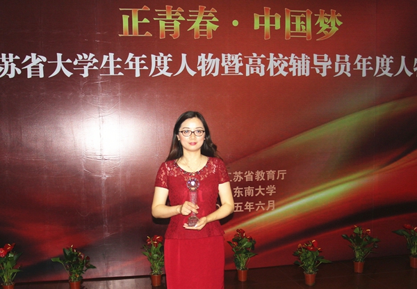 典礼以“正青春·中国梦”为主题,分“逐梦”、“筑梦”、“铸梦”三个篇章,通过年度人物事迹展示、颁奖辞宣读与获奖者发言等环节,颂扬了高校辅导员的奉献精神和高尚情操,表彰了我省大学生的智慧胆识与自强大爱。 据悉,“江苏省大学生年度人物”和“江苏高校辅导员年度人物”由江苏省教育厅组织评选。本次评选历时近半年,通过学校推荐、风采展评、网络投票、实地考察等环节,共评出辅导员年度人物12名、提名奖18名、入围奖30名,大学生年度人物10名、提名奖20名、入围奖32名。我校医学部党工委副书记黎春虹荣获“2014江苏高校辅导员年度人物”称号;计算机科学与技术学院2011级物联网工程专业学生徐伟荣获“2014江苏省大学生年度人物”提名奖。 黎春虹老师二十年来兢兢业业地坚守在一线辅导员的岗位上,她以持久的爱心、耐心和细心成为学生们最喜爱的辅导员、最信任的心灵导师。她安抚同学敏感的心灵,鼓励少数民族学生建立自信,甜美的笑容、周到的关怀,给学子带来春天般的温暖;她恪守师德,尽心尽力地做同学们的良师益友,为同学们全面发展助力起航;她深刻理解苏大医学教育百年的文化精髓,紧扣医学职业发展和学生的个性特征,探索形成一套高效、有序、民主、创新的学生教育管理与服务模式;她重视学生的德育教育,在医学部首创了学生“素质学分”测评制度,建立了鼓励医学生参与社会实践和公益活动的长效机制。在她的悉心指导下,医学部学生曾获全国“挑战杯”金奖、一等奖,百十名学生成功申请到美国耶鲁大学等名校深造,并为医院和社会输送了大批优质的人才。
