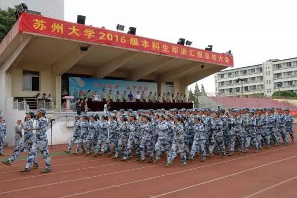 9月27日,我校2016级大学生军训总结大会在东校区大操场举行。承训官兵首长,我校党委副书记、副校长江作军,学生工作部(处)部(处)长、军训团政委陈晓强,学校相关部门负责人以及2016级本科生和新生辅导员出席了大会。大会由我校人武部副处级调研员、军训团副团长张镇华主持。 大会在庄严肃穆的国歌声中拉开帷幕。总指挥向首长报告完毕后,分列式正式开始。同学们组成整齐划一的队伍一一走过主席台,英姿飒爽。