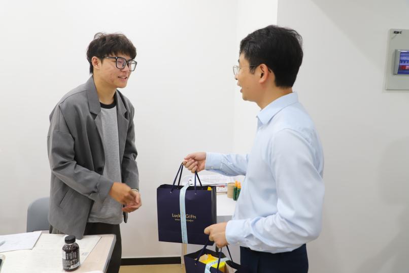 在智工舍发展支持中心,张桥等校领导与正在备战考研的学生亲切交流,细致询问复习进度、备考难点及生活需求,并亲手为同学们送上考研加油礼包。“大家全力以赴,预祝所有同学考研顺利!”温暖的鼓励让现场学子倍感振奋,也生动体现了学校对学生成长发展的深切关怀。