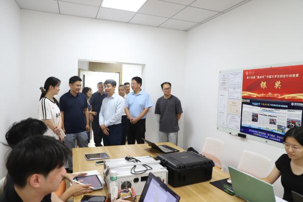 在科创团队空间中,张桥与各入驻团队的师生进行了深入交流。机电工程学院院长孙立宁向张桥一行展示了“芯光未来——半导体超精密抛光”“消化内镜连续体机器人”“Slam Opto雷达——智慧物流”等社区孵化的科创项目,多项成果在国家级赛事中屡获佳绩。轨道交通学院展示了SEER团队针对武汉冻雨开发的“雪中游龙——接触网除冰机器人”,以及基于校友资源建成的中国移动产业生态孵化中心苏州大学工作站。依托社区科创空间,学院专业教师带科研项目常态化进驻社区指导,通过定期开展项目演练、样品展示、技术指导,助力学生将理论知识转化为实践成果,推动创新链与育人链深度融合。