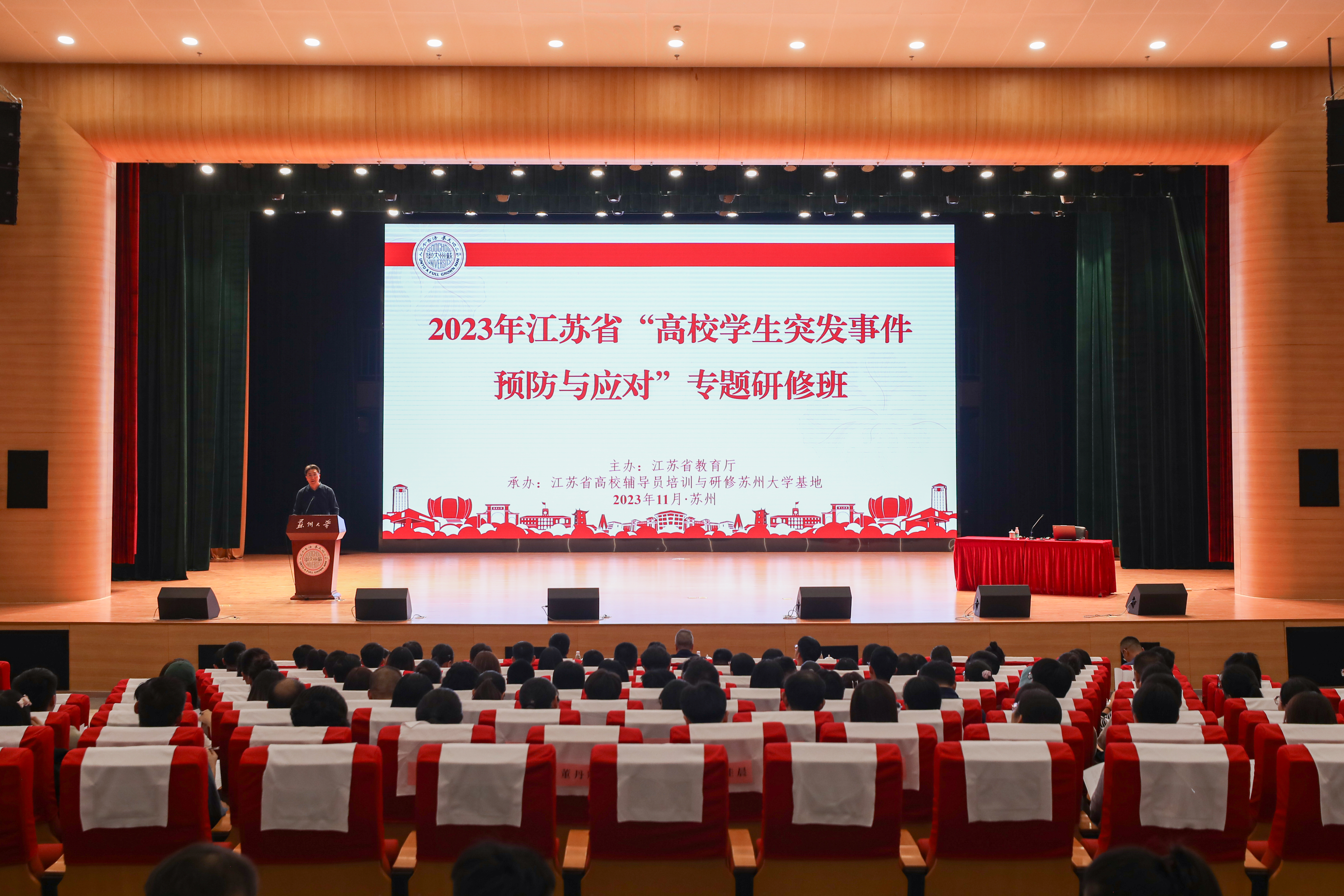11月1日至3日,2023年江苏省“高校学生突发事件预防与应对”专题研修班在我校举办。该研修班由省教育厅主办,江苏省高校辅导员培训与研修苏州大学基地承办。来自全省104所高校的近300名辅导员参加了本次培训。