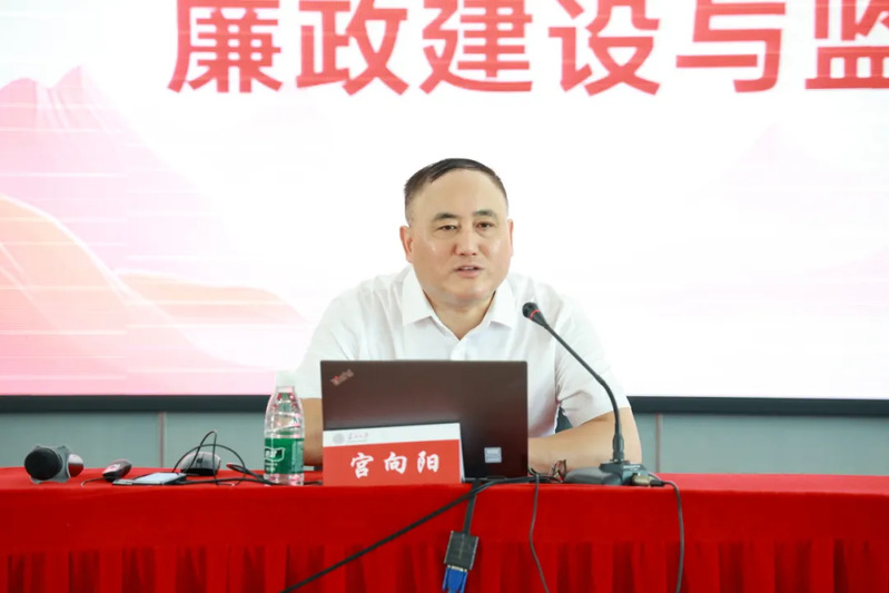 校党委常委、纪委书记、派驻监察专员宫向阳以《强化监督执纪,筑牢廉洁防线 高校全面从严治党的实践和探索》为题开展授课。他详细介绍了加强权力监督的重要意义与“两个答案”的深刻内涵,系统梳理了党的十八大以来党风廉政建设及全面从严治党工作的实践成效与理论成果,并通过实际案例,深度剖析了高校领域的典型问题,为筑牢思想防线、提升监督履职能力提供有力指导。