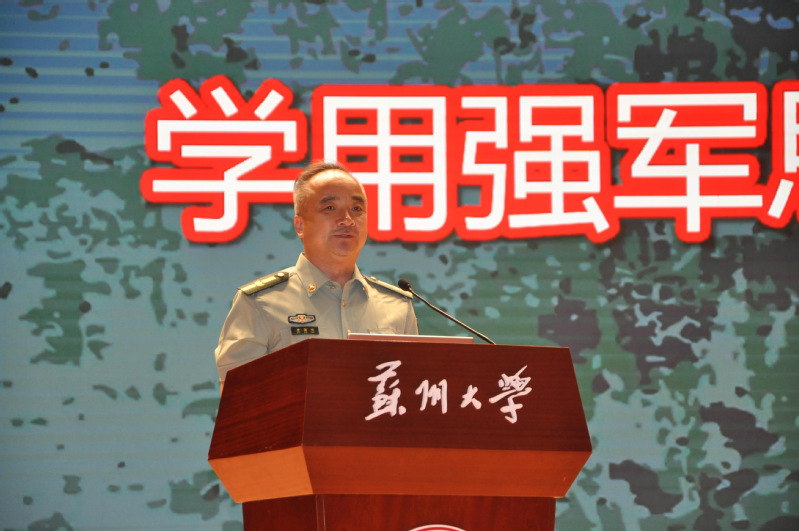本次活动正值学生军训期间,查佐明赠予正在参加军训的学生“立正、稍息、看齐、敬礼”四句口令,殷切希望苏大学子能通过本次军训,坚定理想信念、锤炼强健体魄、严守纪律规矩、树立远大抱负,让青春在守护祖国山河的伟大征程中绽放出绚丽的光彩。