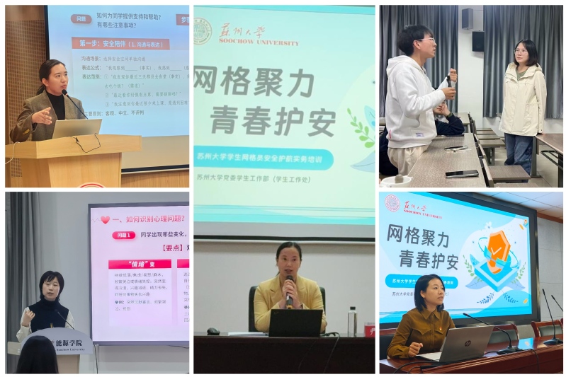未来,我校将持续推进“网格员能力提升计划”,通过“季度复训+案例研讨”等方式,不断巩固网格员“懂安全、善沟通、会疏导”的核心能力,推动这支学生骨干队伍成长为校园安全的“守护者”和心理互助的“暖心人”,为苏大学子的健康成长和全面发展构筑坚实、温暖、可靠的安全与心理支持屏障。