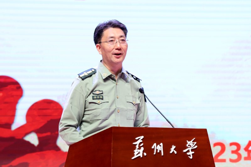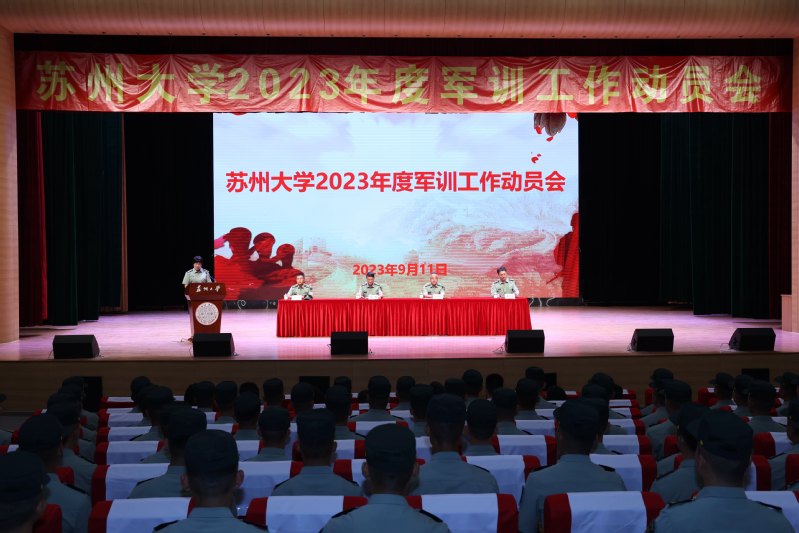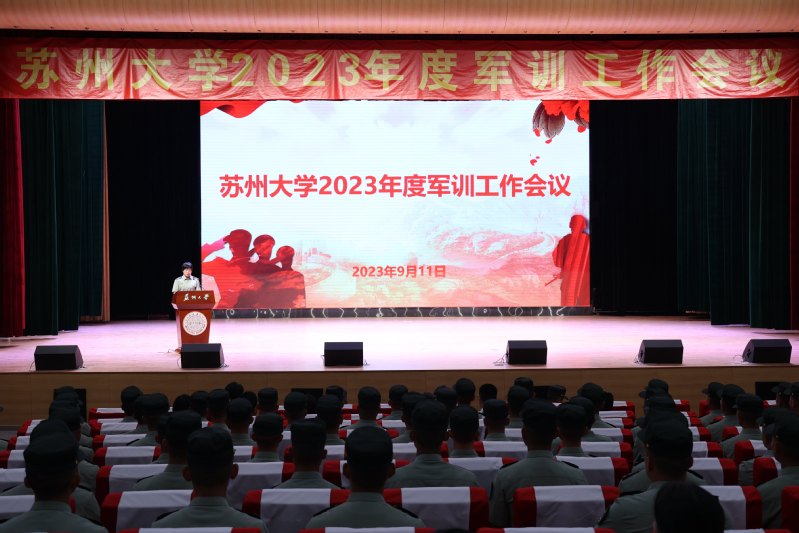 9月11日上午,苏州大学2023年度军训工作动员会在天赐庄校区存菊堂召开。校党委副书记邓敏,党委常委、副校长查佐明,中国人民解放军陆军某部领导、苏州大学军训师师长谢教官,我校学生工作部(处)部(处)长、人民武装部部长、苏州大学军训师政委董召勤,全体承训教官,学校军训工作领导小组成员单位相关负责人,各军训团、营领导,2023级本科生和辅导员出席动员大会。会议由学生工作部(处)副部(处)长、人民武装部副部长宋海英主持。