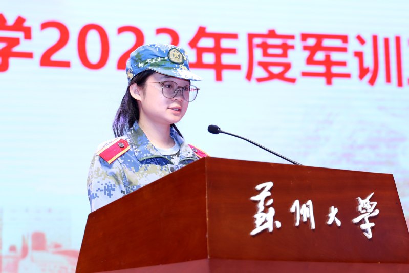 谢教官代表全体承训官兵向苏州大学对人民子弟兵的信任表示衷心感谢。他指出,为期两周的军训是一项神圣而又艰巨的光荣任务,全体承训教官定会牢记使命、不负重托,遵规守纪、严谨作风,帮助同学们掌握好各类军事基础技能、锤炼好过硬的严谨作风、锻造好顽强的奋斗意志。希望同学们能通过军训为下一步的学习和生活打下坚实的思想、心理和身体基础,争做堪当民族复兴重任的年轻人。