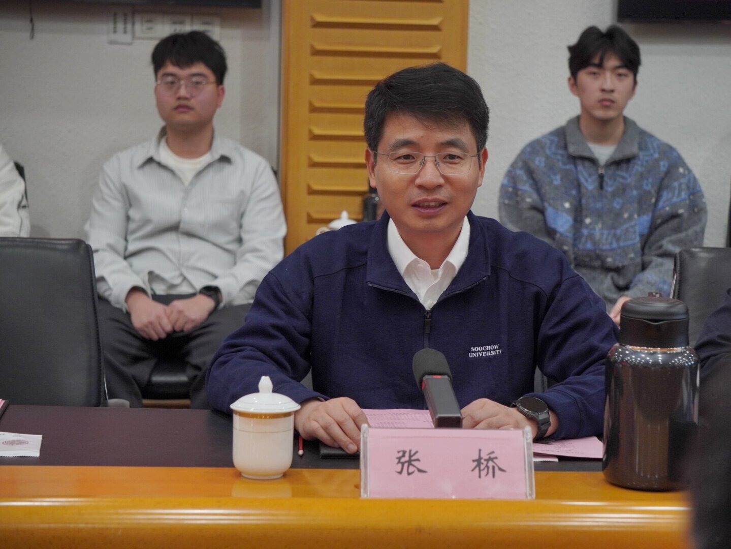 3月25日下午,苏州大学“新质温商”奖学金颁奖仪式在天赐庄校区红楼会议中心217会议室举行。苏州市温州商会名誉会长陈晓敏、会长苏琪皓,我校校长张桥,国内合作发展处、党委学生工作部(学生工作处)负责人,苏州市温州商会企业家代表及获奖学生共同参加活动。仪式由党委学生工作部(学生工作处)副部(处)长谢凯主持。