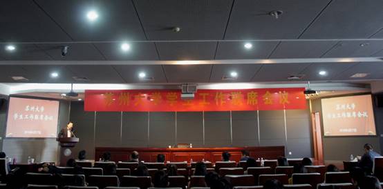 4月17日下午,我校学生工作联席会议在苏州大学附属第一人民医院19号楼学术报告厅举行。我校副校长刘标,各相关职能部门负责人及体育学院、音乐学院主要负责人出席会议;各学院(部)学生工作分管领导、学工办主任、团委书记、研究生专职辅导员、成教秘书参加了会议。会议由学生工作部(处)部(处)长孙庆民主持。