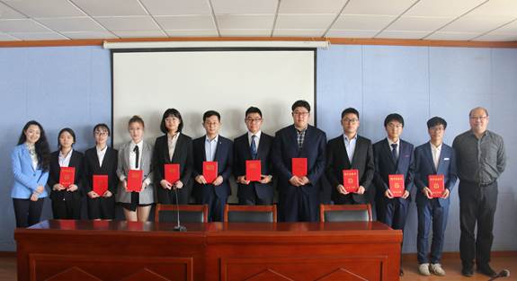 发展委员会办公室副主任张海洋宣读了2017-2018学年“协鑫奖”奖学金获奖学生名单。随后刘标、张诗笳为获奖学生代表颁发证书,并合影留念。
