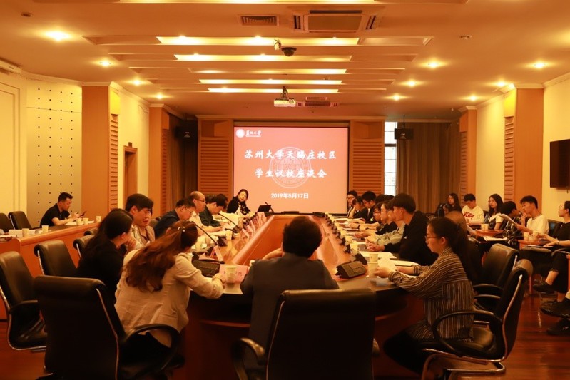 5月17日,副校长刘标参加苏州大学天赐庄校区学生议校座谈会,并主持会议。会议出席人员:苏州大学副校长刘标、党委宣传部副部长程晓军、团委副书记徐美华、教务部办公室主任喻翔玮、学生工作部(处)部(处)长孙庆民、副部(处)长段永锋、党委研究生工作部部长吴雪梅、研究生院研究生管理办公室主任赵一强、保卫部(处)副部(处)长陈晓刚、后勤管理处处长王云杰、副处长朱剑峰、信息化建设与管理中心副主任黄平、图书馆副馆长丁瑶、教服集团公司分管副总戚海涓、体育学院副院长张鑫华,以及天赐庄校区12个学院(部)的12名本科生学生代表及5名研究生学生代表。