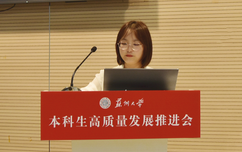 会议伊始,刘婷玉通过具体数据回顾了2025届本科生高质量发展整体情况,分析了近两年学生考研、出国(境)等方面情况,并为2026届本科生高质量发展工作提出针对性建议。